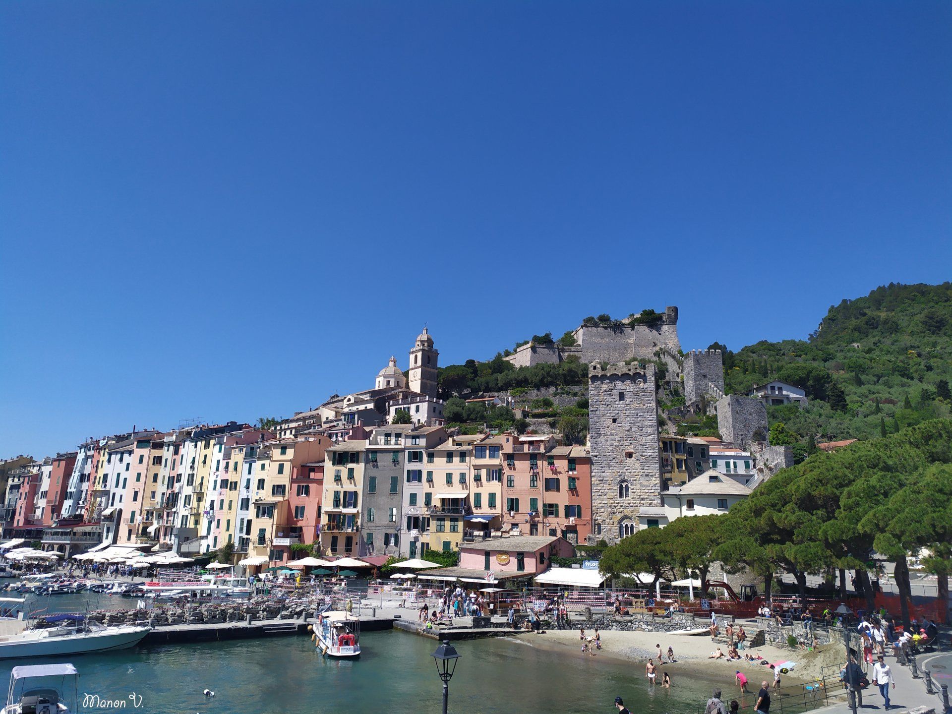 Portovenere. Elle n’est pas dans le parc national des Cinque Terre, mais tout aussi belle, sur la pointe, séparant les Cinque Terre du golf de La Spezia. On trouve en bas de la ville un