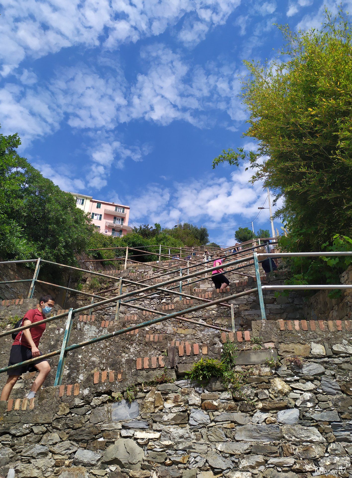 Riomaggiore est, selon moi, la mieux conservée des Cinque Terre. Dans le sens où ses façades colorées sont en meilleur état que dans d’autres villages. Cela doit être une des photos les plus connues des Cinque Terre : le port surmonté de ses habitations colorées, aux ruelles très escarpées. Si vous êtes motivés, vous pouvez monter tout en haut à pieds, si vous préférez, il existe un ascenseur qui vous évite quelques marches. Soyez attentif même en descente, c’est très escarpé.