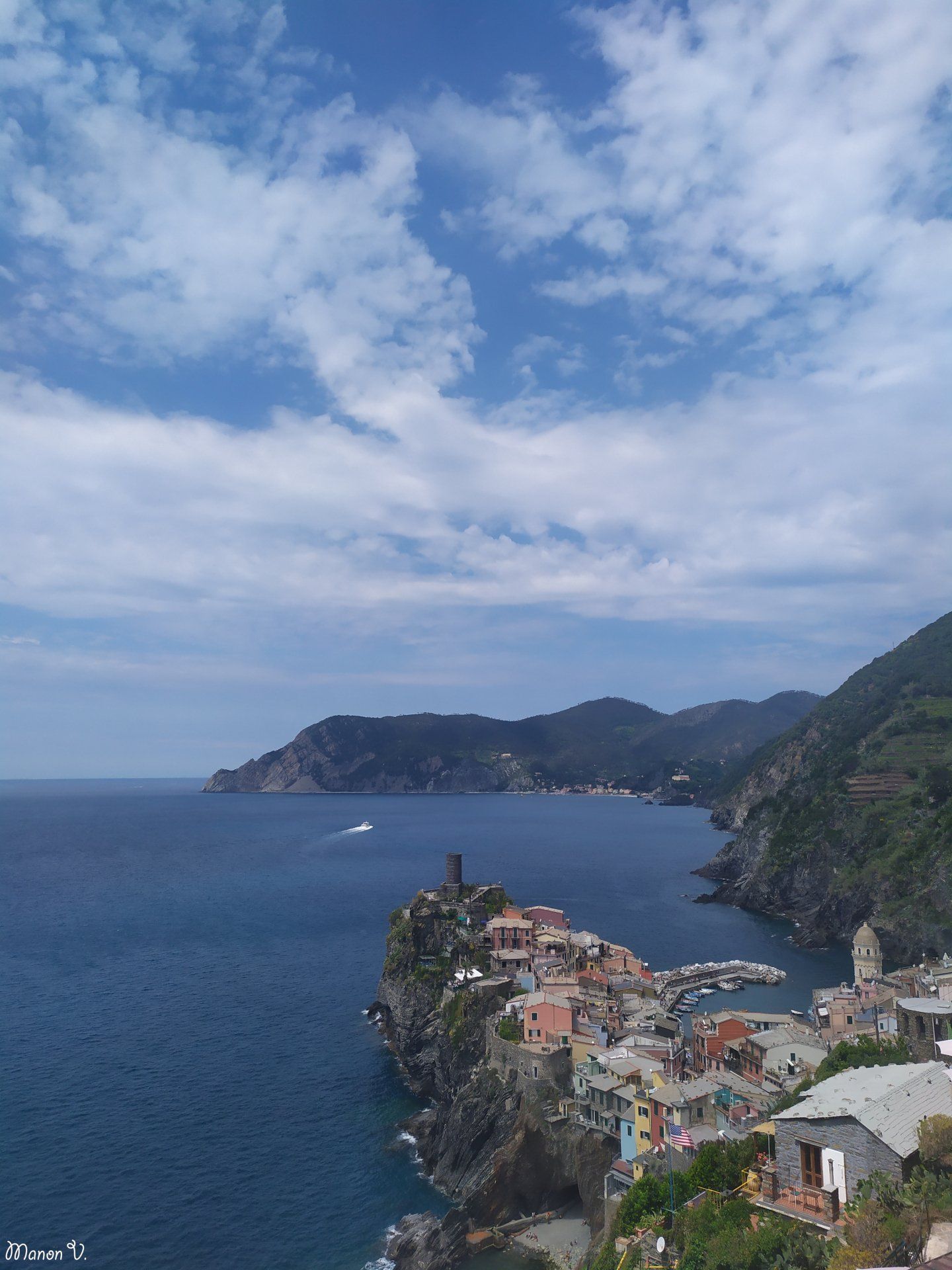 Vernazza, ville par laquelle nous sommes arrivés des hauteurs car nous avons marché de Corniglia à Vernazza. Arriver et voir ce spectacle d’une ville qui se jette dans la mer, c’est encore une fois magnifique. Sa baie avec ses