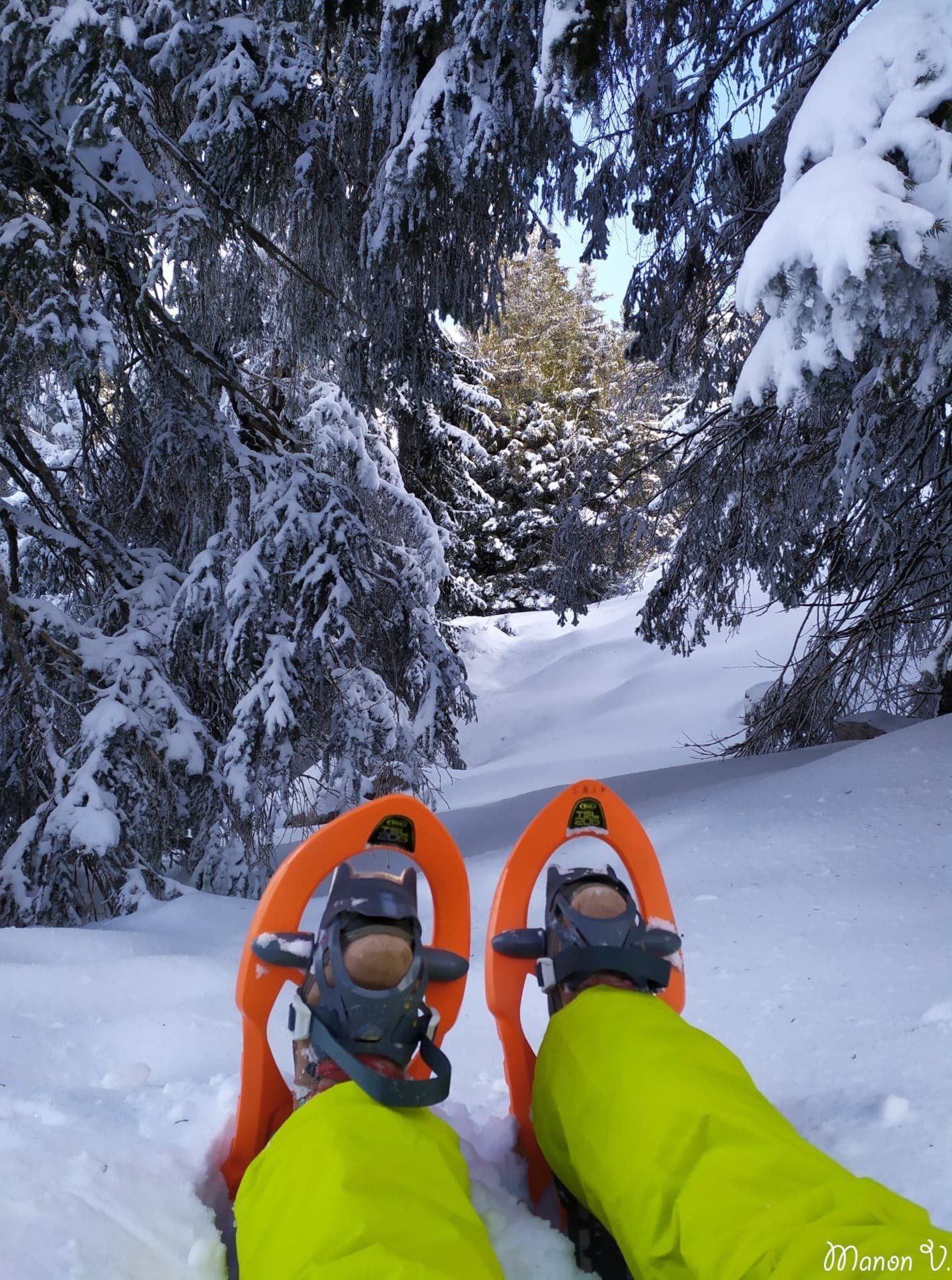 Pour une balade tranquille, louez des raquettes à neige et profitez du craquement de la neige fraîche sans vous enfoncer dedans.