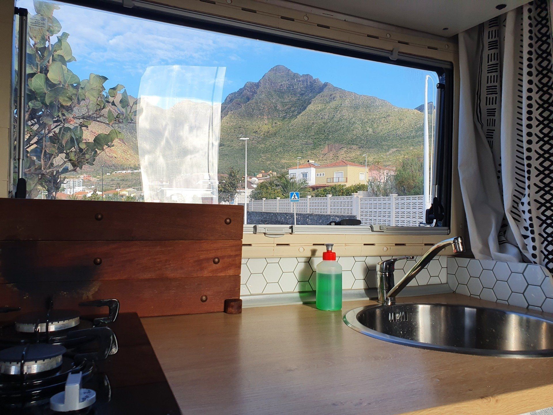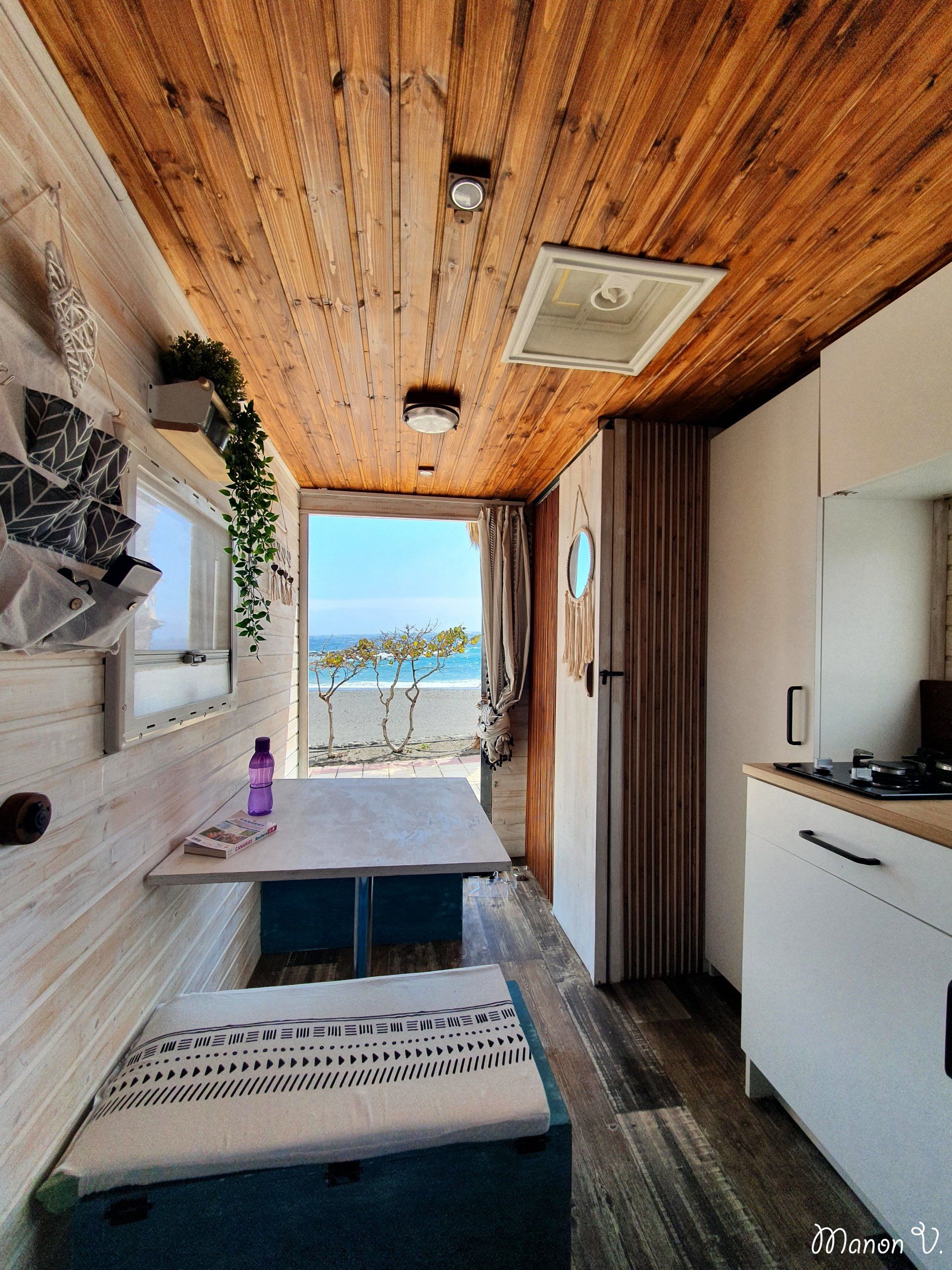 (pour un van), de la place pour cuisiner, une grande douche à l’intérieur… Le rêve quoi.