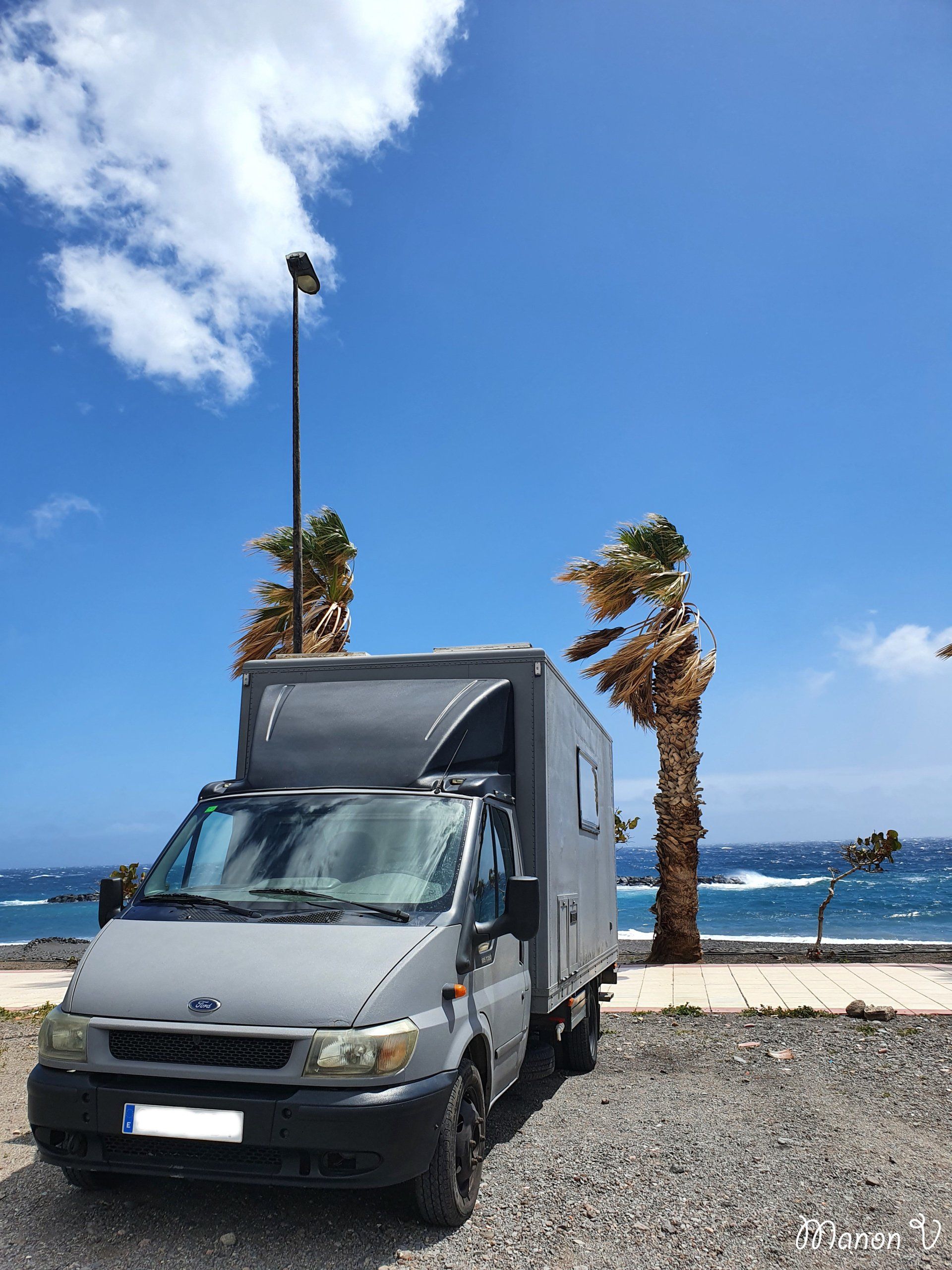 : il est grand, ne passe pas sur toutes les routes de l’île, on va devoir être attentifs. De plus, même avec son moteur neuf, c’est un camion de 2002 sans direction assistée.